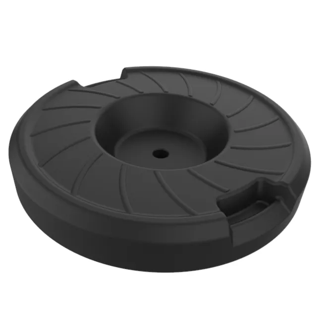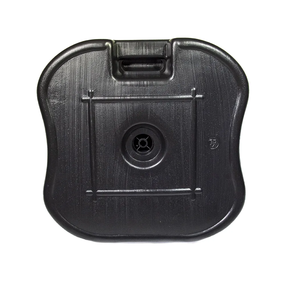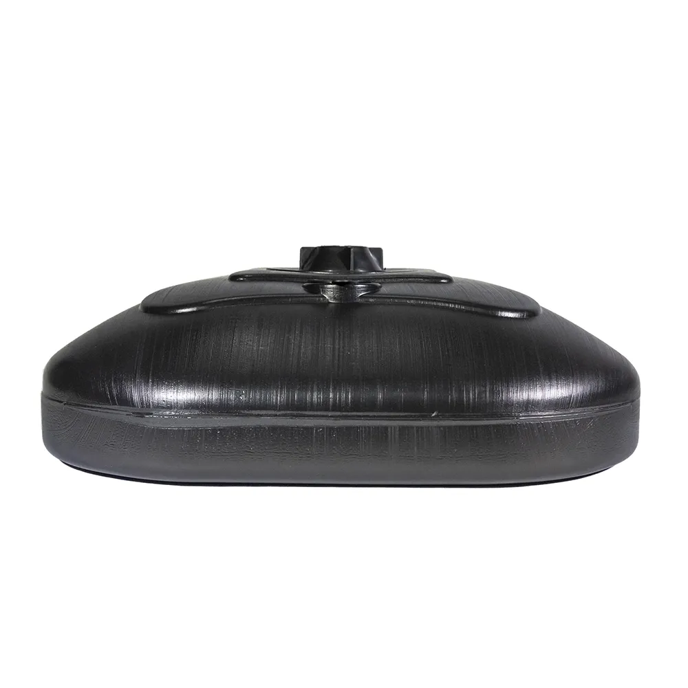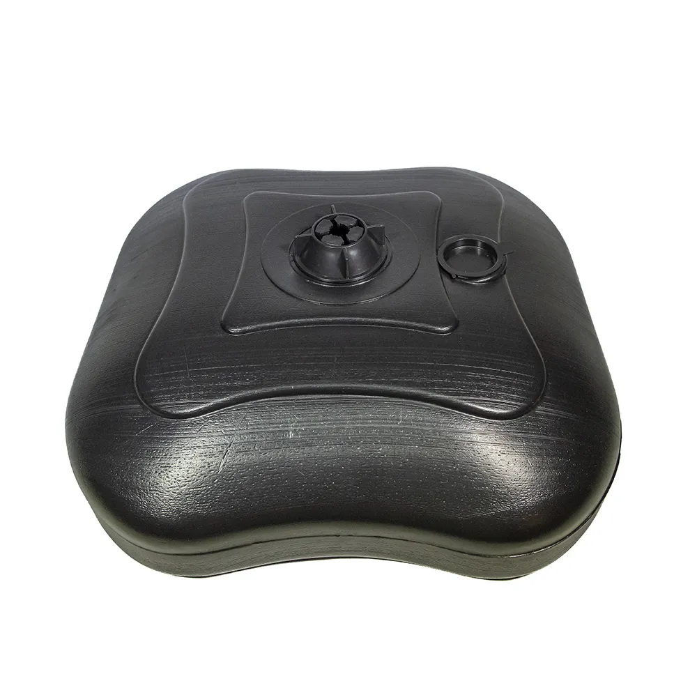 Pode ser preenchida com água ou areia, proporcionando estabilidade e segurança ao suporte de wind banners ou guarda-sóis. A capacidade de preenchimento é de até 16 litros de água ou 20 kg de areia.