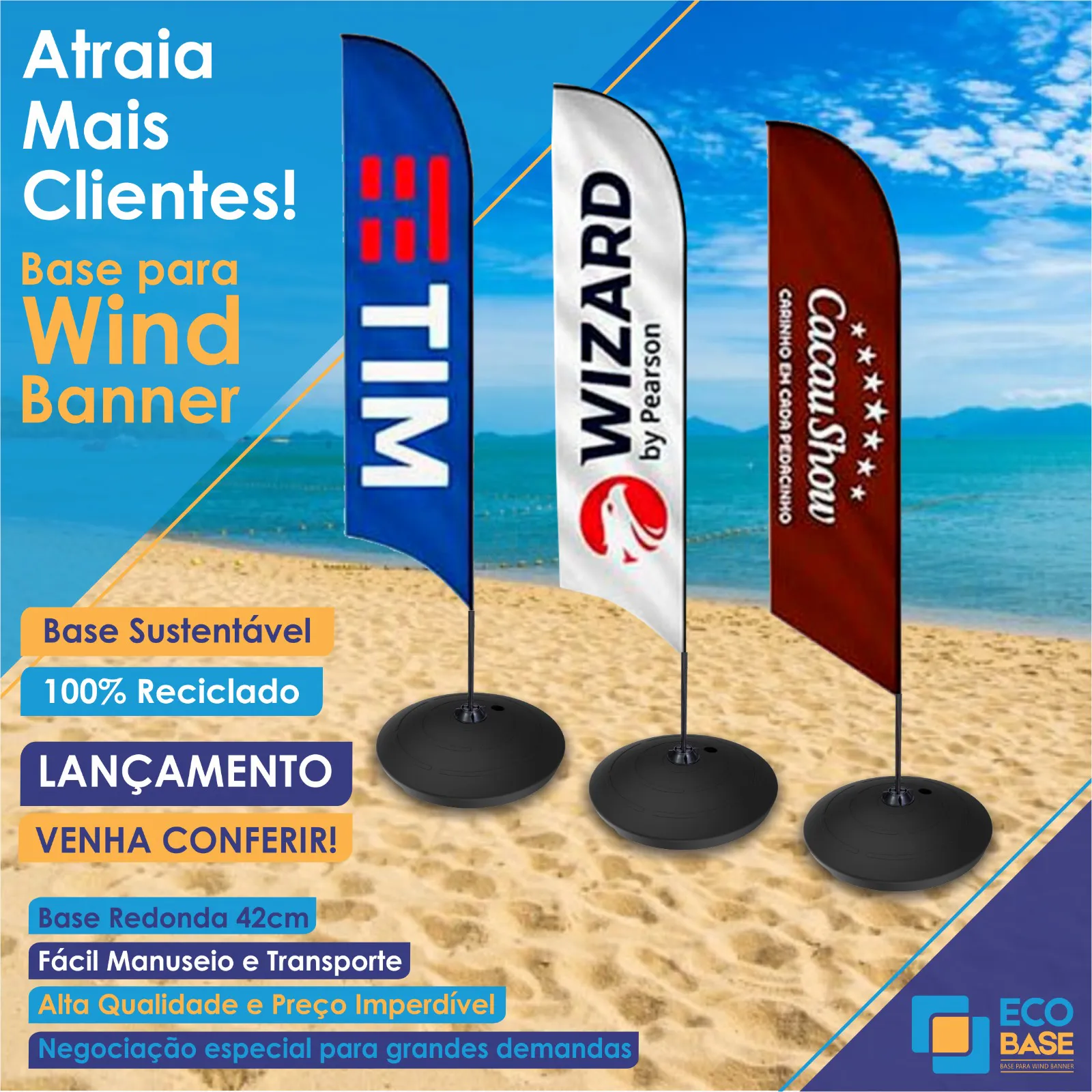 Se você procura uma base para wind banner que seja resistente, segura e ecologicamente correta, a Eco Base é a escolha perfeita!